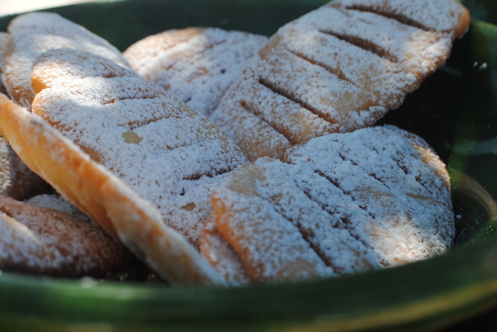 250 gr de farine , 1 bonne pincée de fleur de sel , 60 gr de sucre en poudre , 1 c à s de d'eau de fleur d'oranger , 4 jaunes d'oeufs, sucre glace, huile de tounesol pour la friture .