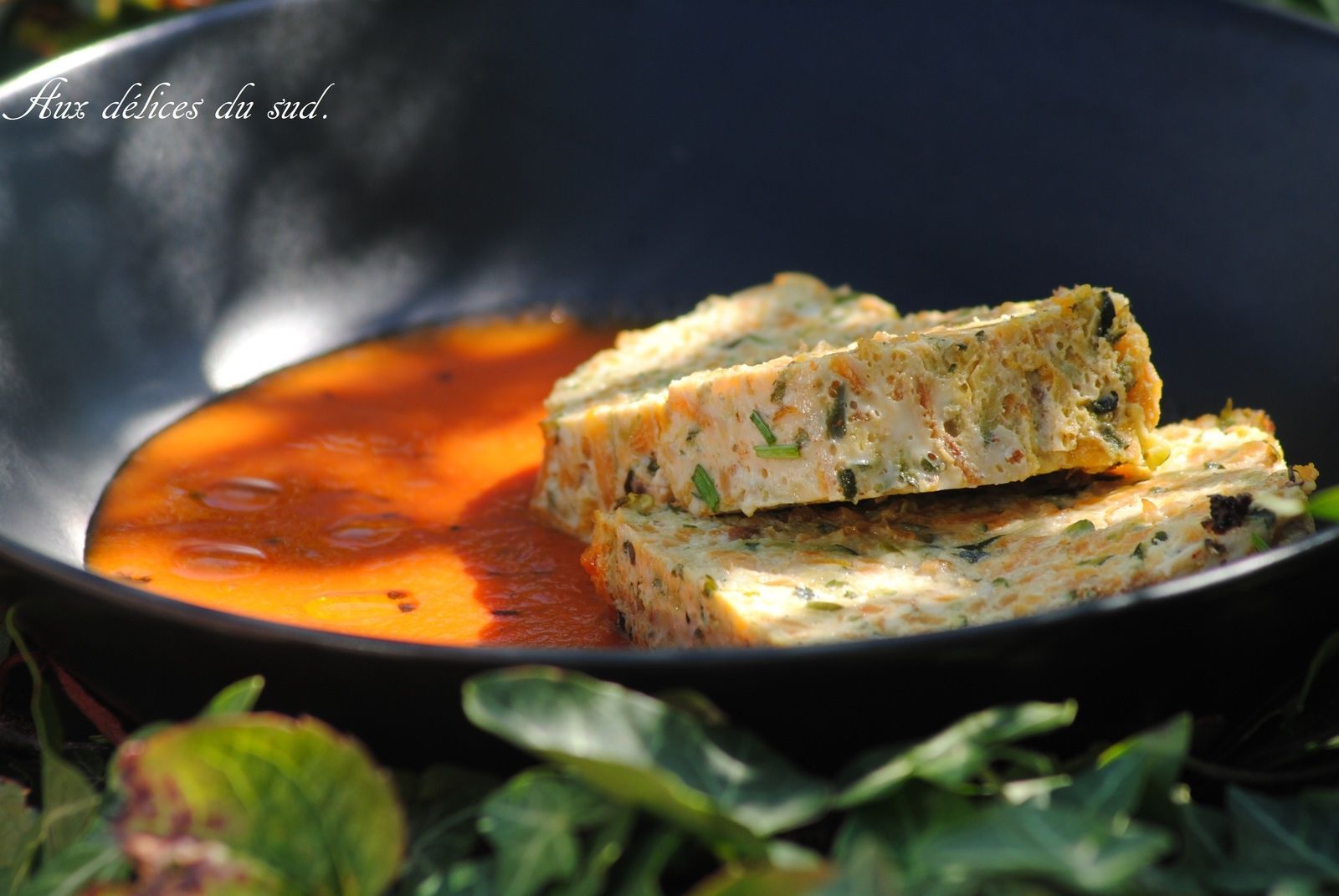 Démoulez la terrine sur un plat long , et sevez avec le coulis de tomates . Se déguste chaude ou froide .