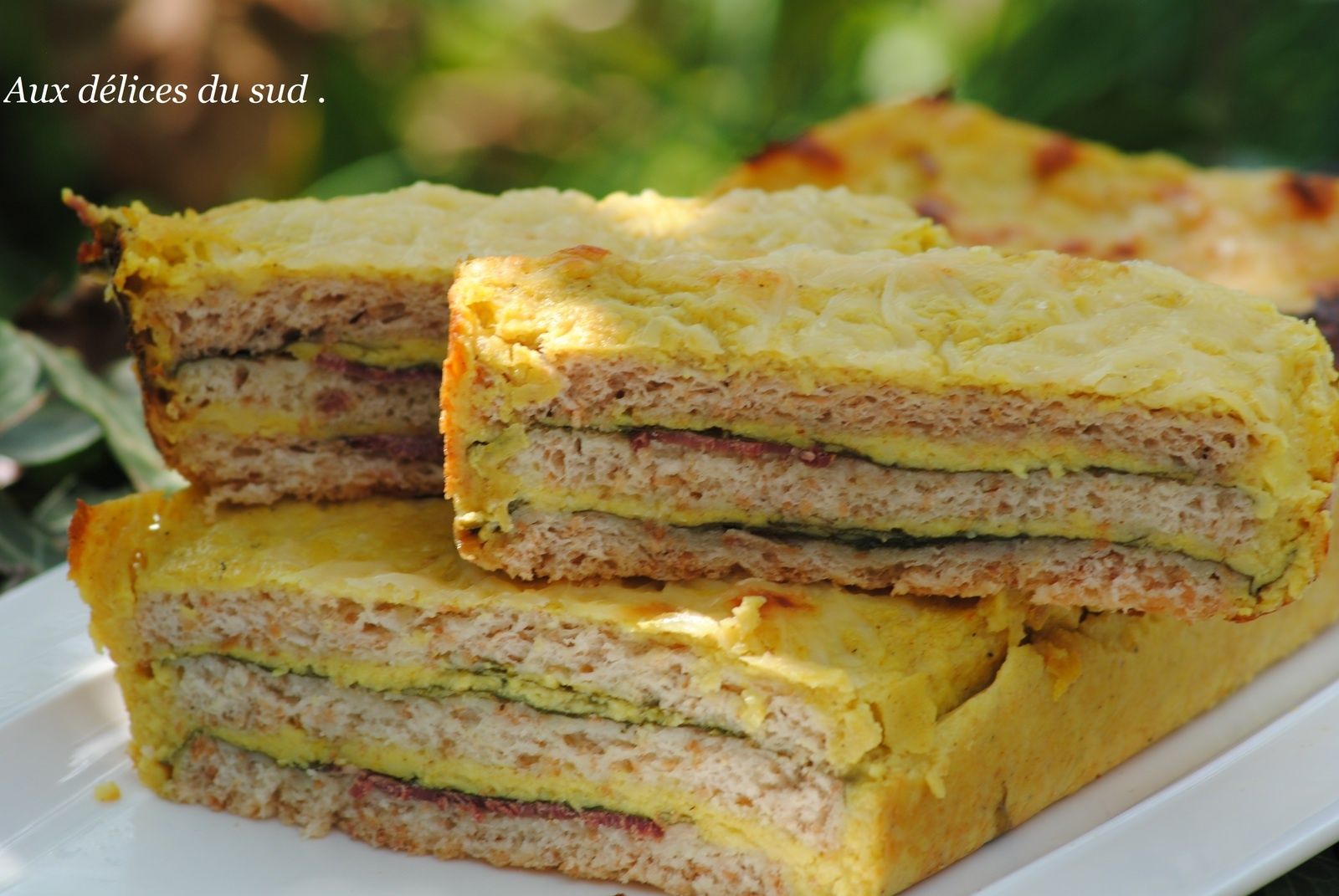 Enfournez 20/30 min . Laissez le croque-cake refroidir avant de le démoulez et découpez . Idéal pour le repas du soir avec une salade verte ou tomates .
